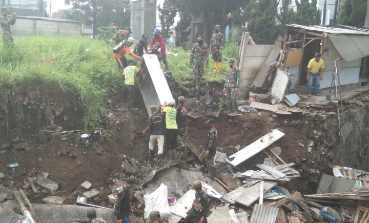 Satgas citarum harum subsektor 13 dan subsektor 01 begitu mendapat laporan warga langsung meninjau ke lokasi , membersihkan puing reruntuhan kirmir yang panjang nya mencapai 35 meter dengan ketinggian 5 meter tersebut.